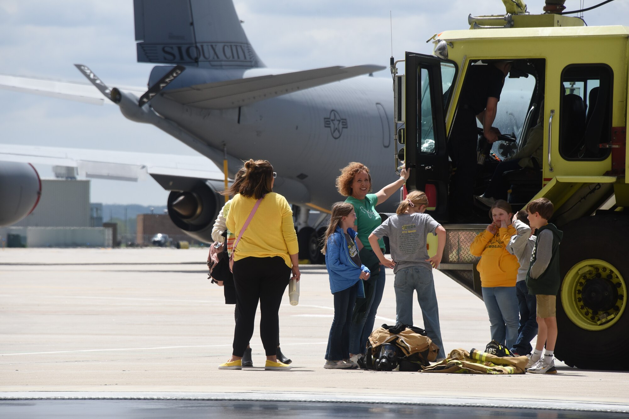 During the tour, airport firefighters were on hand to do some show and tell of their own with two of the unit’s large pumper trucks.